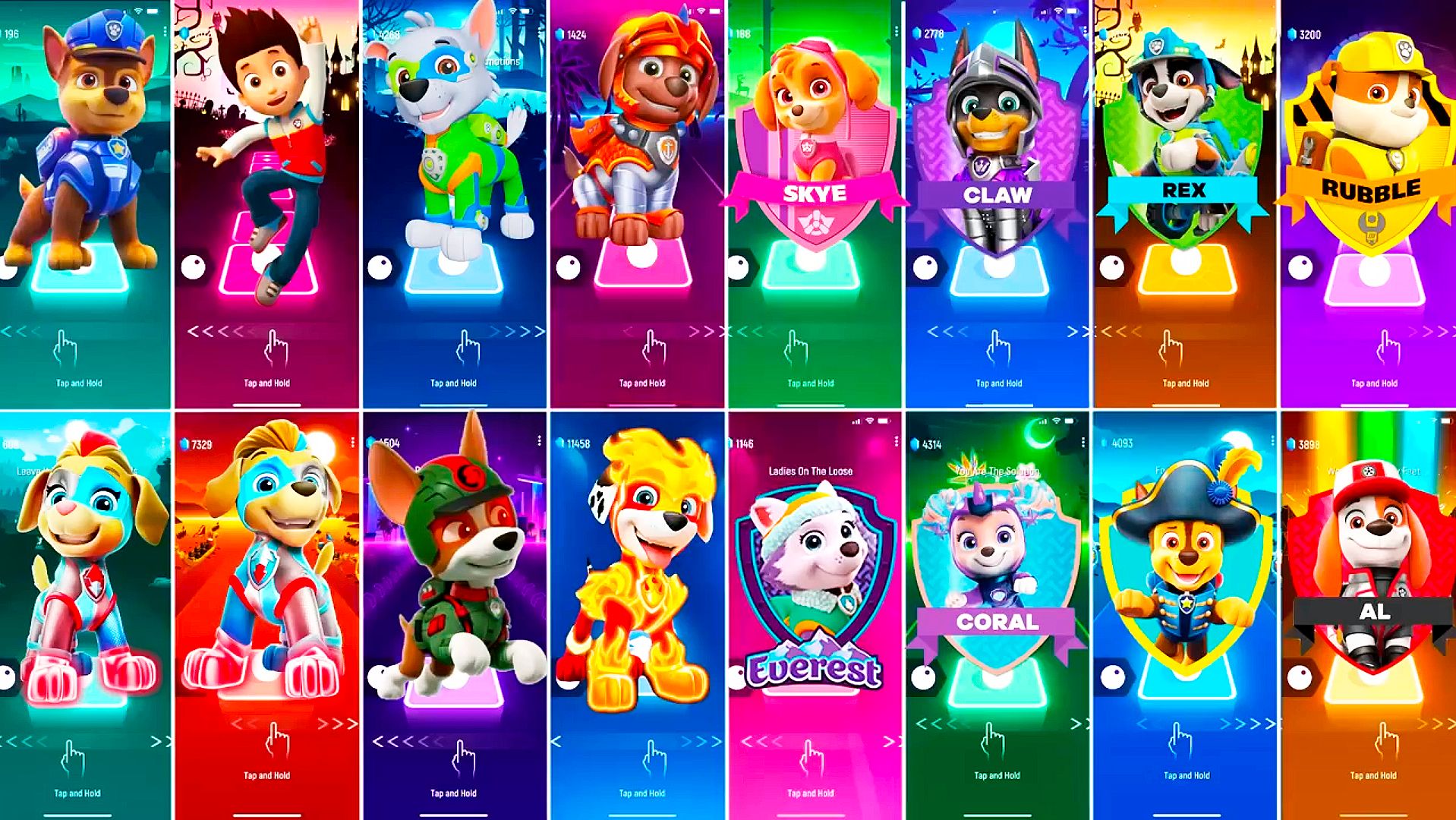 Мультики для Детей Щенячий Патруль Tiles Hop - ГОНЩИК, РАЙДЕР, РОККИ, ЗУМА, СКАЙ, КРЕПЫШ