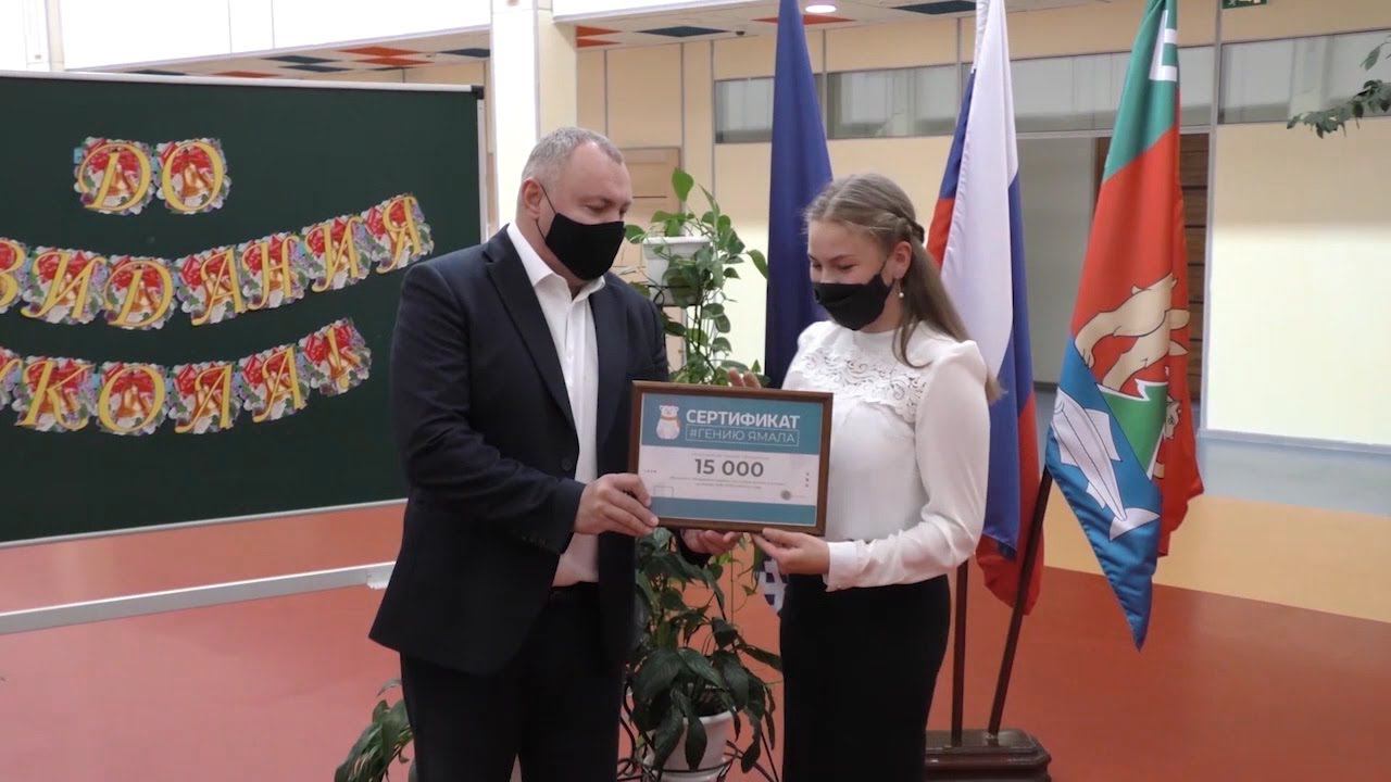 Вручение сертификата "Гению Ямала" выпускникам отличникам школы "Радуга".