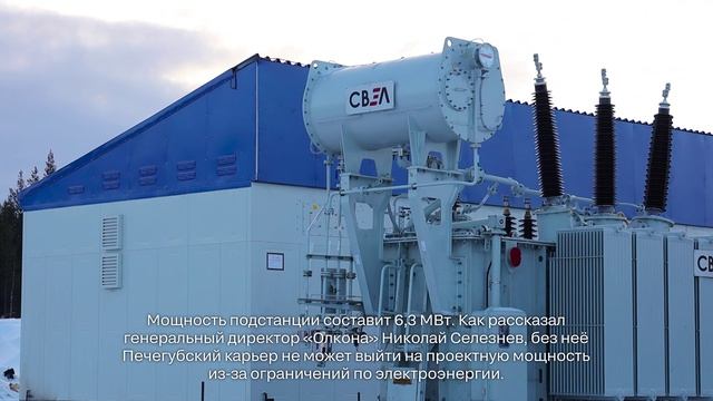 Главный энергетик «Олкона» Андрей Борисов называет строящуюся подстанцию «сердцем» Печегубского месторождения. Она будет обеспечивать электричеством технологическое оборудование, освещение, водоотлив, а в будущем здания административно-бытового комплекса и ремонтные боксы. На данный момент ведётся строительство открытого распределительного устройства мощностью 110/6 киловольт.
