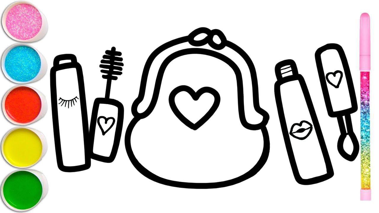 Cara menggambar tas makeup dan lipstik untuk anak-anak/How to draw a makeup bag and lipstick for kid
