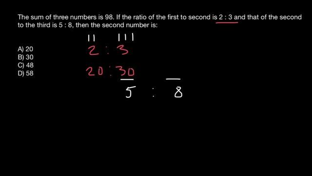A ratio is an ordered pair of numbers a and b, written a / b where b does not equal 0. A proportion is an equation in which two ratios are set equal to each other. For example, if there is 1 boy and 3 girls you could write the ratio as: 1 : 3 (for every one boy there are 3 girls) 1 / 4 are boys and 3 / 4 are girls. Problem: The sum of three numbers is 98. If the ratio of the first to second is 2 :3 and that of the second to the third is 5 : 8, then the second number is: A) 20 B) 30 C) 48 D) 58 #ratio #proportion #math https://www.youtube.com/watch?v=-Sq-A9UTnU4