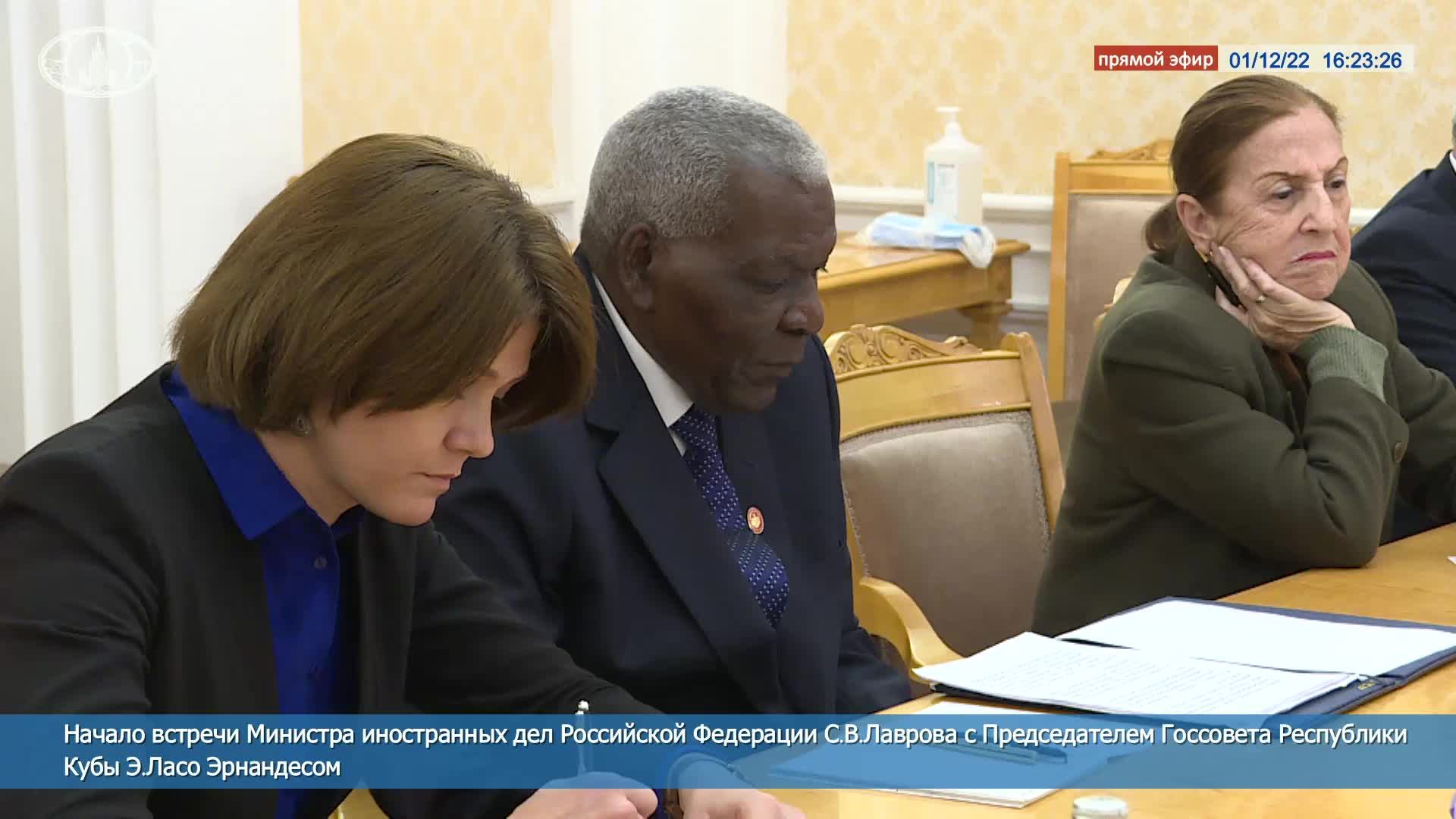 ? #ПрямойЭфир: Начало встречи Министра иностранных дел России С.В.Лаврова с Председателем Госсовета Республики Кубы Э.Ласо Эрнандесом