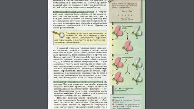 Биология (Л.Н.Сухорукова) 10-11к §19 Объяснение законом Менделя с позиций гипотезы чистоты гамет
