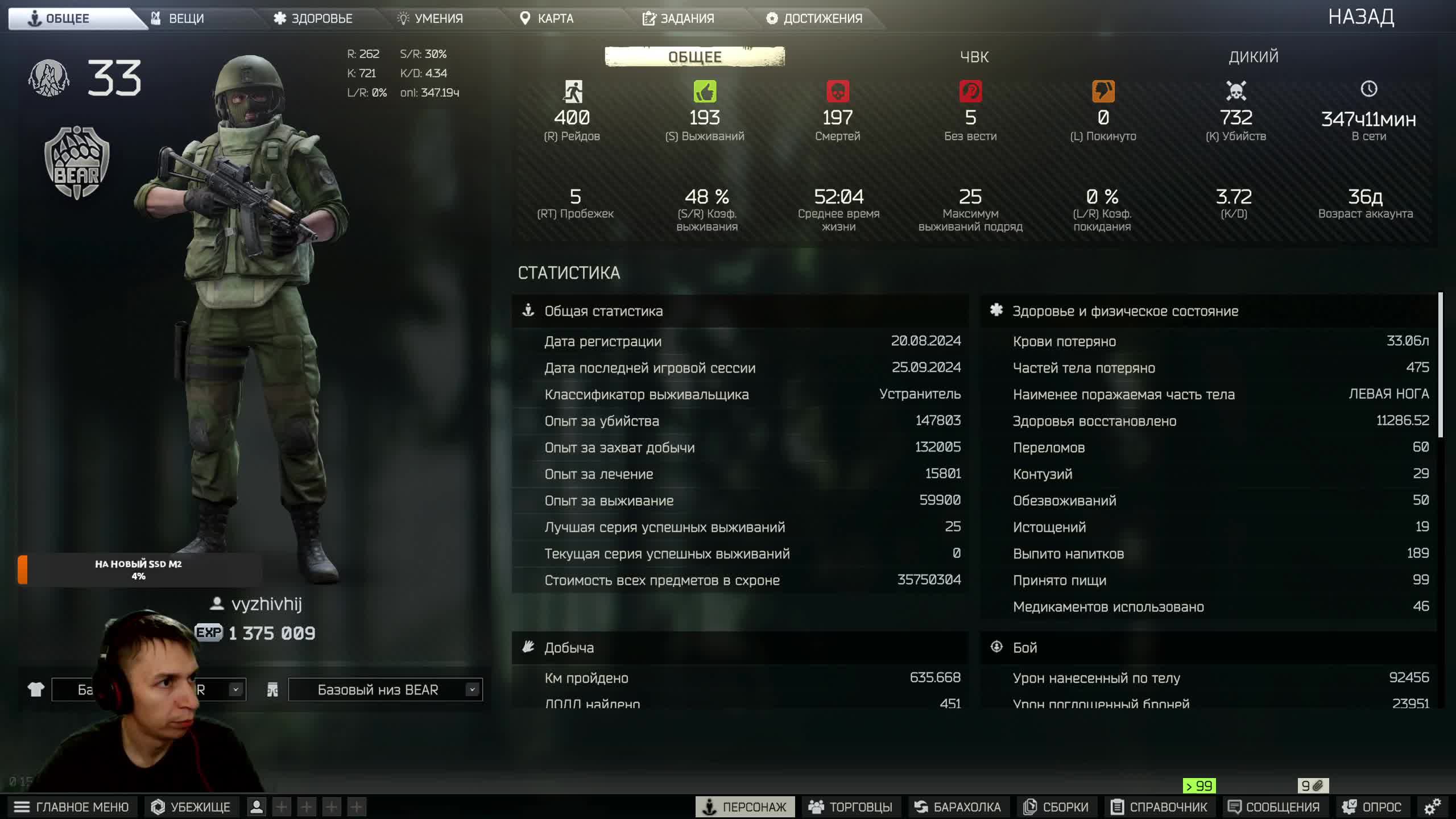 Escape from Tarkov лутаем монету, качаем убежку Полноэкранно в твич: https://www.twitch.tv/vyzhivshij?sr=a Поддержать стримера(66﹥100﹥300﹥500﹥1000) https://www.donationalerts.com/r/vyjivshiy Мой ПК: проц Ryzen 7500F мать B650M AORUS оперативка Patriot 6400 cl30 32гб видяха GYGA RTX 4070s