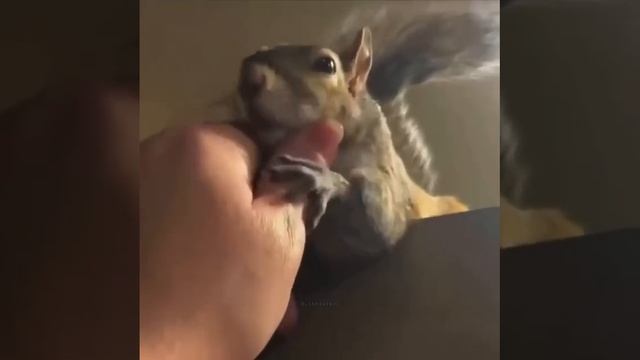 Белочку впервые в жизни погладили, и ей это настолько понравилось, что теперь она всегда хочет ещё