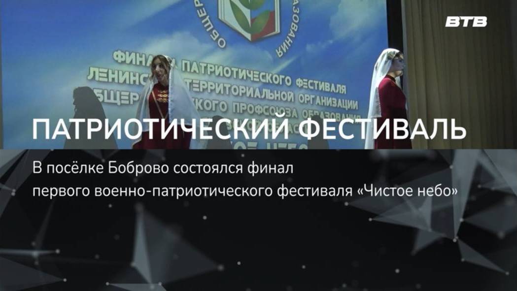 В посёлке Боброво состоялся финал первого военно-патриотического фестиваля «Чистое небо». На сцене образовательного центра «Лидер» выступили воспитатели дошкольных отделений и детских садов. Они исполнили стихи и представили музыкальные номера. Подробности в нашем сюжете