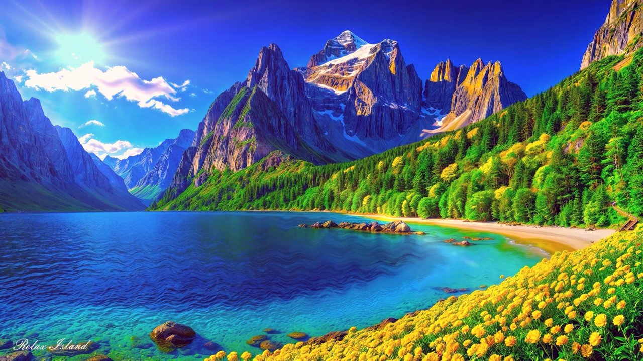 Хорошо расслабляющая музыка для души и восстановления нервной системы на берегу озера в жаркий летний день! Быстро успокаивающая музыка для сна и подавления стресса под солнечными лучами на теплом песчаном пляже! У подножия гор спокойное теплое озеро, на берегу много зелёных деревьев, целое поле желтых цветов и музыка для медитации, создают идеальную атмосферу для релаксации! Солнечный свет мягко ложится на воду, превращая её поверхность в мерцающее полотно из золотых бликов. Лёгкие волны неспешно накатывают на тёплый песчаный берег и тихо шуршат, убаюкивая и настраивая на отдых. Воздух тёплый, пропитанный ароматом свежей травы, тёплого песка и цветущих полевых цветов, которые ярким ковром тянутся вдоль берега. Зелёные деревья создают прохладную тень, в которой можно укрыться от солнца, слышно тихое шелестение листвы, будто сама природа шепчет успокаивающие слова. Где‑то высоко поют птицы, их голоса мягко переплетаются с медитативной музыкой, создавая ощущение полного слияния с окружающим миром. Лёгкий ветерок приносит свежесть с озера, приятно остывая кожу и помогая телу ещё больше расслабиться. Горы, возвышающиеся вдали, кажутся надёжной и спокойной защитой, их силуэты мягко вырисовываются на фоне ясного голубого неба. На их склонах играют солнечные лучи, создавая мягкие тени и живые контрасты. Всё вокруг дышит тишиной, теплом и безопасностью, как будто весь мир замедлил свой бег, чтобы дать вам возможность отдохнуть и восстановиться. Музыка для медитации льётся плавно, без резких звуков, она словно продолжение лёгкого шёпота волн и шелеста листвы. Каждая нота помогает отпустить внутреннее напряжение, расслабить мысли и тело, успокоить сердце. Нервная система постепенно приходит в равновесие, дыхание становится глубже, а мысли — светлее и спокойнее. Вы можете представить, как лежите на мягком тёплом песке или сидите на берегу, опустив ноги в воду. Тело приятно прогрето солнцем, но не перегрето — лёгкий бриз и тень деревьев создают идеальный баланс комфорта. Закрыв глаза, вы слушаете музыку, шорох волн и далёкие голоса природы, и с каждым мгновением чувствуете, как усталость и стресс ускользают, растворяясь в этом летнем мире покоя. В этом идеальном сочетании тёплого дня, ласкового солнца, свежести воды, зелени деревьев, ярких жёлтых цветов и мягкой медитативной музыки, вы легко входите в состояние глубокого расслабления. Внутри становится тихо и светло, а душа наполняется ощущением гармонии, лёгкости и счастливого, безмятежного покоя. Здесь можно просто быть — дышать, слушать, чувствовать и медленно погружаться в мягкий, восстанавливающий отдых и сон. При создании видеоролика была использована музыка: https://pixabay.com/ru/music/relaxing-music-vol1-124477/ #МузыкаДляДуши #МузыкаДляСна #МузыкаДляМедитации #ЗвукиПрироды #Медитация #ЗвукиДляСна Видео оригинальное, было создано владельцем канала в 3D программах и аудиоредакторах. © Relax Island 2025. Все права защищены.
