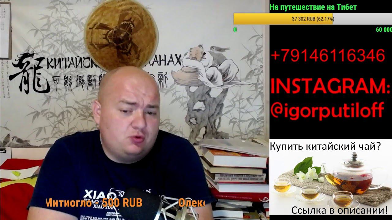 Донат (отображается на экране): http://www.donationalerts.ru/r/putiloff Официальная группа канала https://vk.com/club133678276 Купить чай: https://vk.com/market-133678276 Мои статьи на яндекс-дзене zen.yandex.ru/id/5cd97fd2da97b800b4826a9b *** Whatsapp, Telegram, Viber, Wechat: +79146116346 (можно звонить, если дозвонитесь) Для пожертвований (донатов) : DonationAlerts: http://www.donationalerts.ru/r/putiloff PayPal: igorputiloff@yandex.ru Карта сбербанка: 4276 8030 1859 0360 WeChat-Pay (微信支付) http://s012.radikal.ru/i319/1707/9c/a93989b62262.png Alipay (支付宝): kitairus@163.com Яндекс-деньги: 41001855873853 Инстаграм: https://www.instagram.com/igorputiloff/