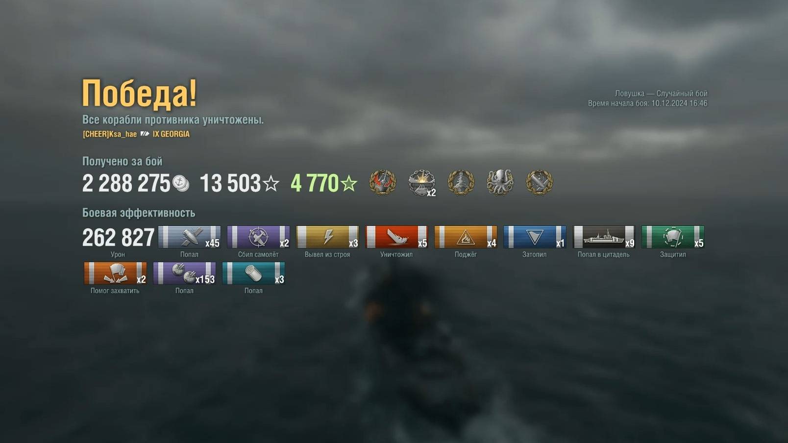 Линкор Georgia: +262к урона 5 фрагов на карте Ловушка - World of Warships