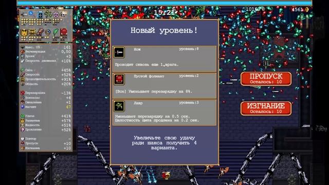 Гипер (Hyper) + Спешка (Hurry) 1) Нож (Knife) + Наруч (Bracer) = Тысяча лезвий (Thousand Edge) 2) Библия короля (King Bible) + Заклинатель (Spellbinder) = Нечестивые псалмы (Unholy Vespers) 3) Волшебный жезл (Magic Wand) + Пустой фолиант (Empty Tome) = Священный жезл (Holy Wand) 4) Огненный жезл (Fire Wand) + Шпинат (Spinach) = Адское пламя (Hellfire) 5) Пентаграмма (Pentagram) + Корона (Crown) = Роскошная Луна (Gorgeous Moon) 6) Лавр (Laurel) 7) Дупликатор (Duplicator) 8) Метаглио левый (Metaglio Left) 9) Серебряное кольцо (Silver Ring) 10) Золотое кольцо (Gold Ring) Заходите на стримы https://www.twitch.tv/linnorai , буду очень рада вас видеть На чай и пряник: https://www.donationalerts.com/r/linnorai https://boosty.to/linnorai Steam: https://steamcommunity.com/id/LinNorai/