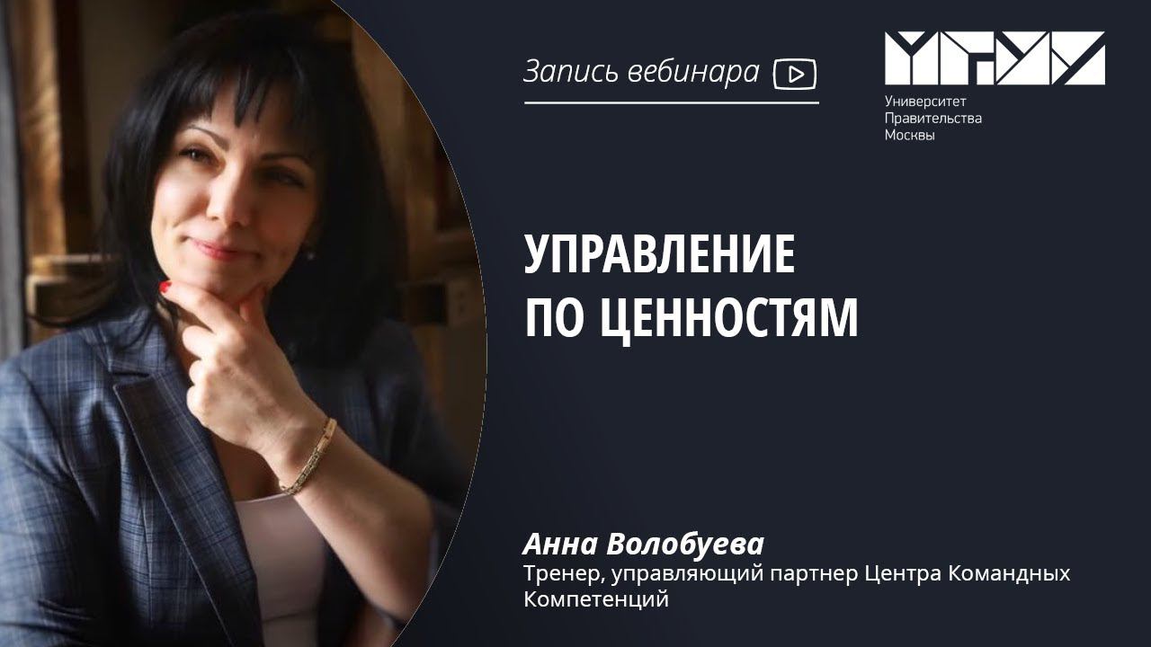 Что такое управление по ценностям, как его наладить и как оно изменит ваше представление о менеджменте – рассказывает Анна Волобуева, тренер, управляющий партнер Центра Командных Компетенций. 00:00 - Начало вебинара. Видеоэкскурсия по МГУУ 1:45 -Актуальность темы. Представление спикера 7:20 - Структура вебинара 8:37 - Управление по ценностям -эволюционная ступень развития 12:37 - Ценности: понятие и система взаимосвязей ценностей 23:50 - Ценности в организации и их индикаторы 27:30 - От декларируемых ценностей к живым 40:15 - Сопротивление при реализации проектов управления по ценностям 1:04:06 - Базовый набор шагов при реализации проекта управления по ценностям 1:23:17 - Ответы на вопросы 1:46:20 -Подведение итогов вебинара, заключительные слова спикера