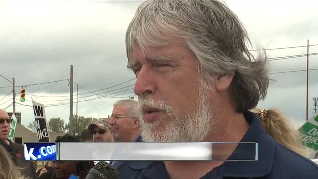 Senator Sherrod Brown visits with striking United Auto Workers at General Motors plant in Parma