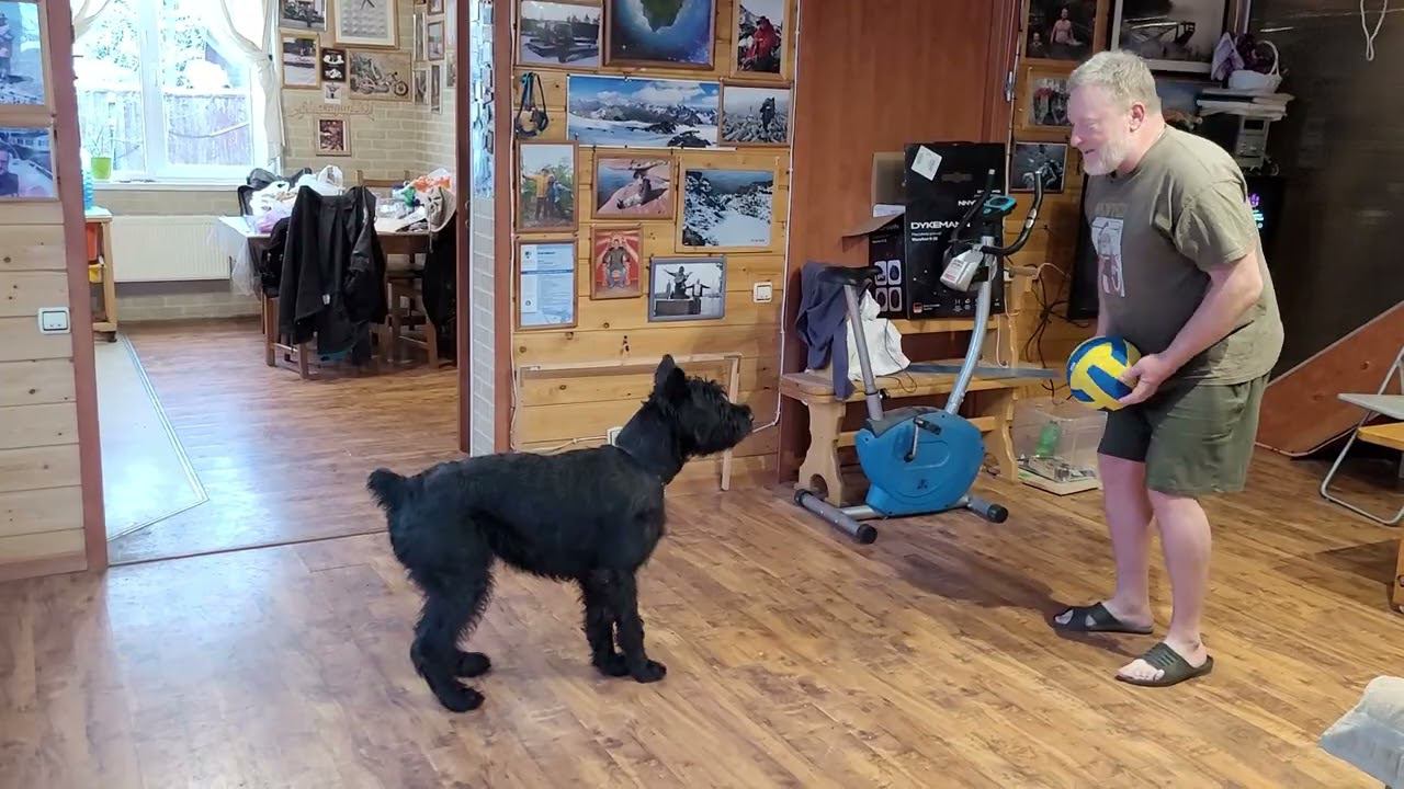Ризеншнауцер и волейбол