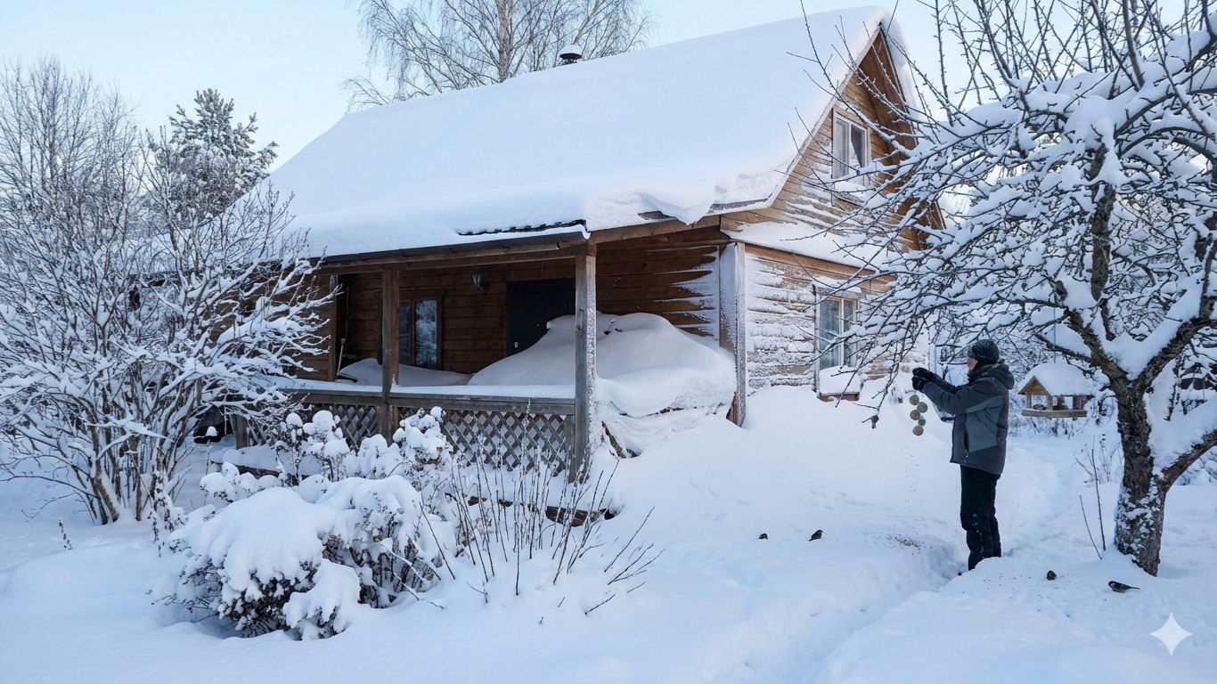 Зимняя сказка нашей дачи: Январское безмолвие и предвкушение тепла На календаре начало января, и наша любимая дача превратилась в истинное царство Снежной королевы! Природа здесь словно замерла в глубоком, благородном сне, укрывшись пушистым белым одеялом. Снегопады прошлой недели потрудились на славу: сугробы выросли выше забора, превратив знакомый ландшафт в сказочные холмы и долины. Даже наша уютная крытая терраса не устояла перед натиском стихии — она до самого края засыпана искрящимся, наметенным снегом. А там, где вольно гуляет морозный ветер, природа создала настоящие шедевры: на белоснежной глади вырезаны причудливые, тончайшие узоры, напоминающие застывшие волны далекого северного моря. Природа в объятиях зимы Деревья, кустарники и многолетние цветы давно сбросили свою листву, доверив свои хрупкие ветви снежному покрову. Они стоят притихшие, величественные в своем зимнем убранстве. Но жизнь в саду не замирает! Мы приехали не с пустыми руками: Рассыпали отборное зерно для лесных гостей. Развесили на ветвях аппетитные мешяные шарики (лакомство для синичек). Наблюдать за тем, как суетливые птицы слетаются на угощение среди этой звенящей тишины — истинное наслаждение для души. Время отдыха и сладких надежд Безусловно, наша дача заслужила этот зимний покой. Она отдыхает, набирается сил под снежной броней, чтобы весной вновь расцвести во всем своем великолепии. И хотя зима еще в самом разгаре, сердце уже чувствует перемены: световой день становится длиннее, а солнце — ярче. Мы с нетерпением ждем тех самых первых, по-настоящему теплых лучей, когда можно будет часами греться на солнышке. Ну и, конечно, какая же поездка на дачу без старой доброй традиции? Ароматный, сочный шашлык, шкварчащий на углях, и заветные сто грамм для согрева — это классика, которая здесь уместна в любое время года! Ведь именно в такие моменты понимаешь, что жизнь прекрасна во всех ее проявлениях. #дача #зима #январь #отдых #шашлык #зимняясказка #природа #тишина #предвкушениевесны