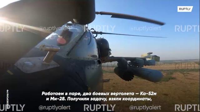 🇷🇺«Взяли координаты, вышли в район цели, нанесли авиационный удар»: экипаж вертолета Ка-52М ВКС России успешно поразил подразделения ВСУ в зоне СВО #Россия видео Ruptly,