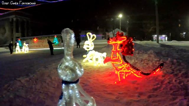 Площадь Победы, новогодняя ёлка вечером.
