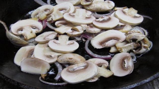 Теплый фасолевый салат с шампиньоном и шпинатом