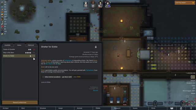 I play with the new may update, thus including the new meditation mechanics. The scenario is crashlanded on strive to survive difficulty in the committment mode. Randy Random is the storyteller. The starting pawns are random as is the starting collection. I do not use any gameplay altering modes but only two small UI mods: One shows you the weapons a pawn is carrying, the other allows for more detailed base-planning.