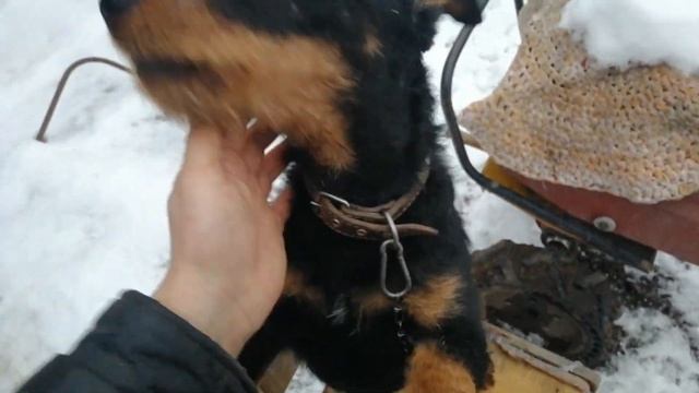 Немецкий ягдтерьер - просится гулять, чищу вольер.