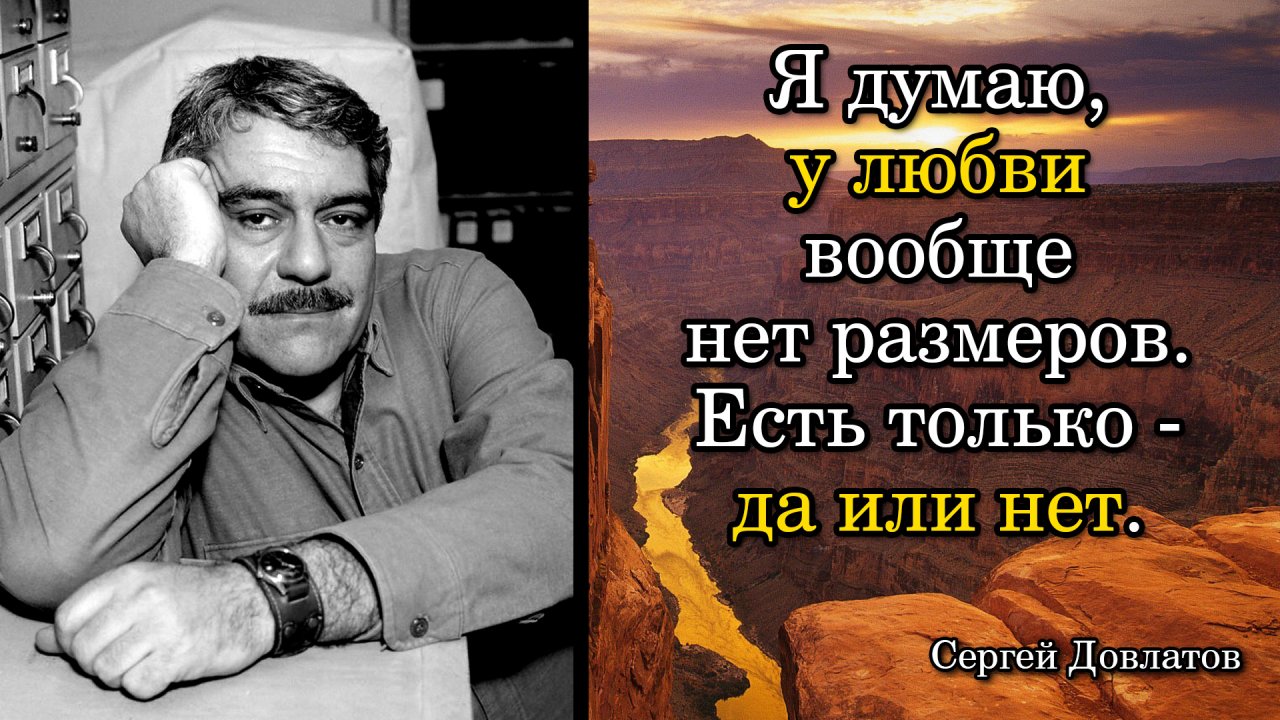 Сергей Довлатов. Я думаю, у любви вообще нет размеров. Есть только - да или нет.