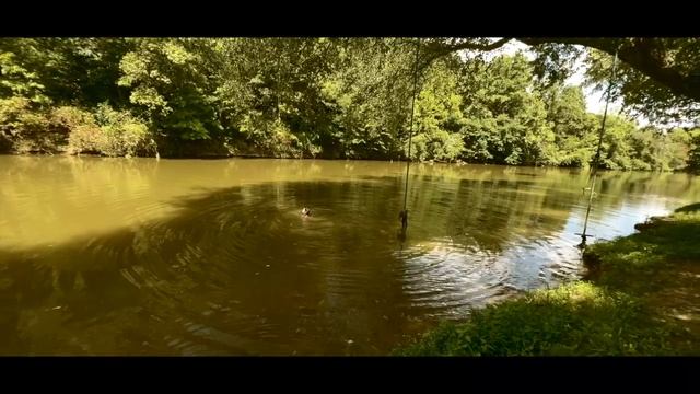 Девушка купается в воде реки.
