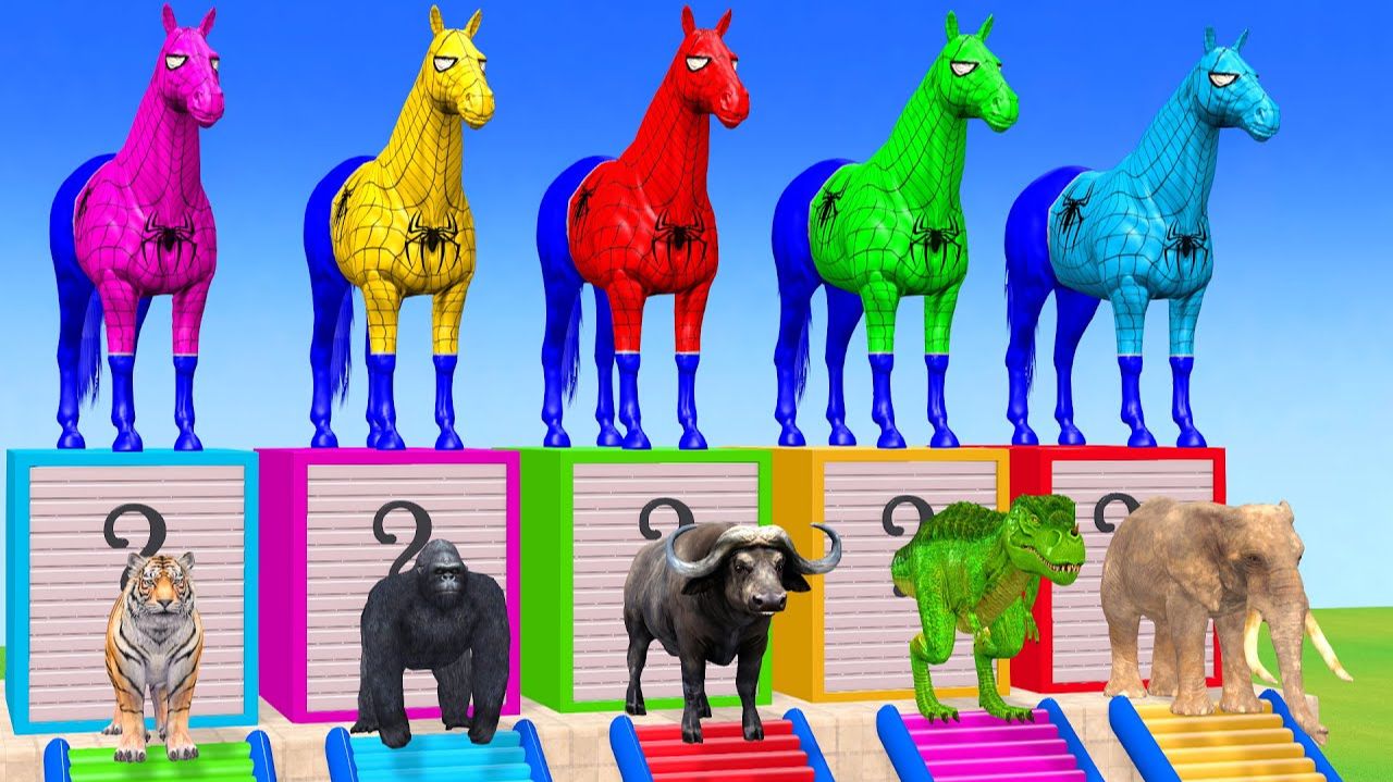 Веселые игры с слоном, гориллой, бегемотом, тигром - 3D игра с животными - Забавные 3D животные
