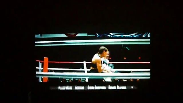 Projected on a wall in 100" size.
