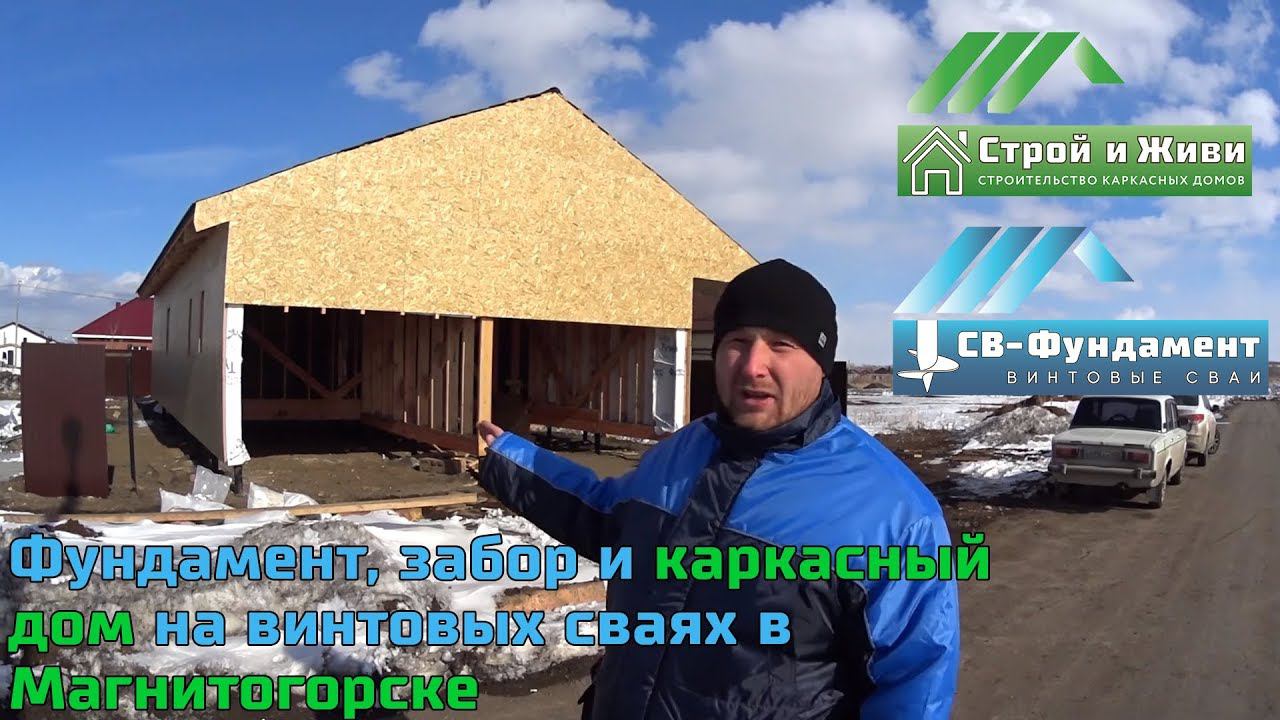 Строительство каркасного дома на свайном фундаменте, забор на сваях. Магнитогорск. Строй и Живи.