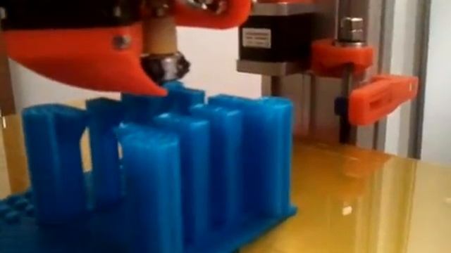 Felix 3D printer printing a Lego compatible castle. You can get the STL 3D model from thingiverse or download code to construct your own flavor with OpenScad. Disclaimer: I am not a programmer, the code is ugly but seems to work ok. http://www.thingiverse.com/thing:2106 http://edutechwiki.unige.ch/en/Category:3D_printing http://edutechwiki.unige.ch/en/Felix_3D_printer