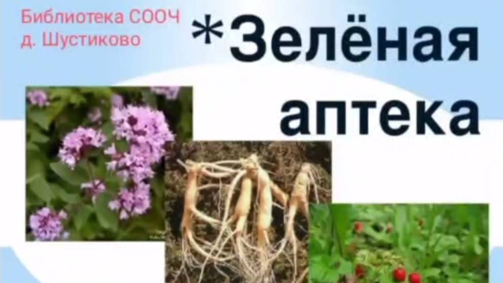 Библиотекарь сельского отдела обслуживания читателей д. Шустиково Оксана Аксенова подготовила видеопрезентацию под названием «Зелёная аптека», которая познакомит с лекарственными растениями, правилами сбора, их целебными свойствами и областями применения.