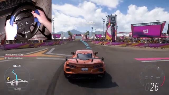 Chevrolet Stingray Coupe Forza Horizon 5 Thrustmaster T150 gameplay road to Emerald Circuit Rookie