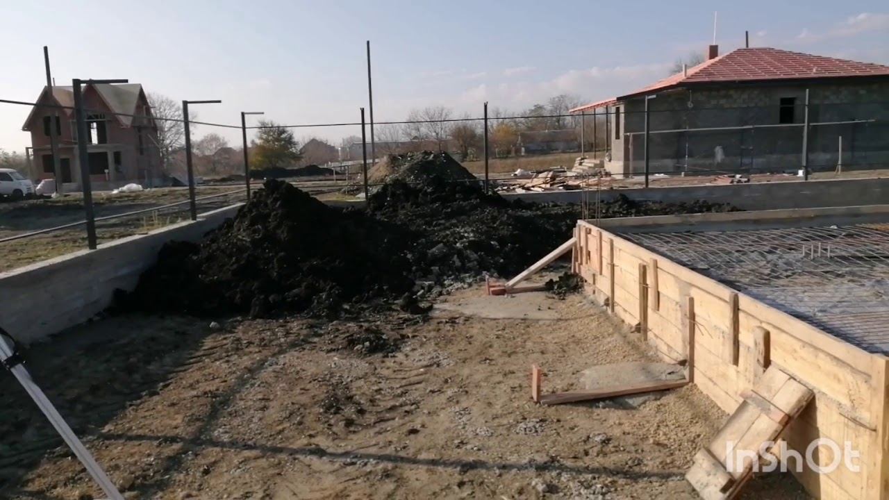 Сделали сантехнику, залили плиту. Трактор копает траншею под воду. Денёк удался, мы довольны!