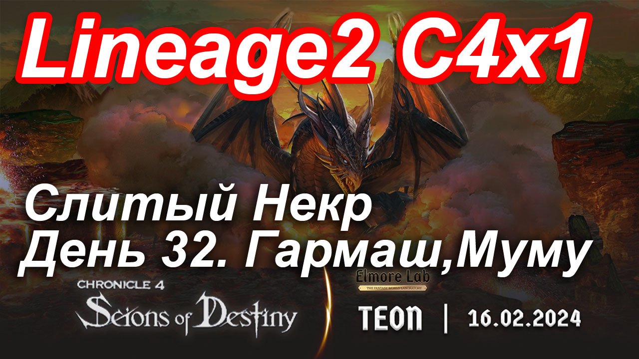 Lineage2. Elmorelab.com. Cronicle4 x1. Cлитый некр. День 32. Гармаш, Муму.