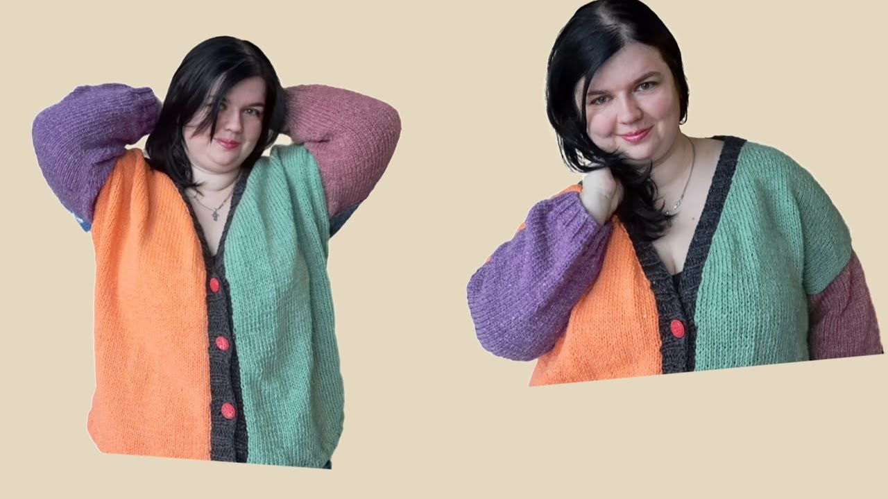 АРХИВ. Смело?! Необычно?! Нестандартно?! Кардиган колор блок. Пряжа ангорка