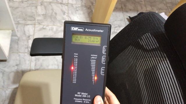 Measured in this video (recorded in July 9, 2018): 1) My bedroom. There's a wi-fi router in the other next to it (Archer C8, with beacon interval configured to 1000 instead of 100, and also "Transmit Power" to Middle instead of High). As you can see the radiation levels are lower this way. The Archer C8 is in the other bedroom separated by a wall. The Archer C8 has both the 2.4 and 5 Ghz networks enabled, so I can choose between them. Go to 01:30 and you'll see the Acoustimeter detecting the Archer C8 from the other room. That part of the wall is right in the path of where the Archer is located. Also check 20:40 . 2) In my desk (also in my bedroom) I have a second router: the VR900. Wi-fi is totally disabled for both 2.4 and 5 Ghz. In this video I measured the radiation levels if I enabled the wi-fi feature in the VR900. In the VR900 case I configured Transmit Power to HIGH and beacon interval for the default value of 100. Go to 03:10 . That's when I enabled the 2.4 Ghz in the VR900. Imediatelly you'll see radiation increases in my room. As you can see the 5 Ghz network is not active. 3) Go to 07:00 That's when I enable the 5 GHz network. So beginning at 7 minutes the router is at full power and we have both the 2.4 and 5 Ghz networks available. 4) Go to 12:45 . I decide to turn off the 2.4 GHz network from the VR900. Meaning the VR900 will only broadcast the 5 GHz in my bedroom. As you can see radiation levels dropped A LOT. At 13:40 you will notice that if I hold the Acoustimeter VERY CLOSE to the VR900 the levels can increase to 2 and even 4 V/m, but at ANY OTHER DISTANCE this meter does not recognize the 5 GHz is still enabled. Or if it is I couldn't tell from the readings. 5) At 17:50 the 5 GHz is turned off, too, in the VR900. Meaning my bedroom is now only receiving radiation from the Archer C8 and any other sources, such as neighbors. As you can see at 18:55 the Acoustimeter does not detect anything anymore, when close to the VR900. That indicates the 5 Ghz is recognized by the meter, yet it doesn't explain the huge drop in the readings. 6) 20:40 - this is the Archer C8 location, in the other room. The signals are strong in this area (almost outside my bedroom) because the Archer C8 is located in a direct line from the wall. Also check 01:30 .