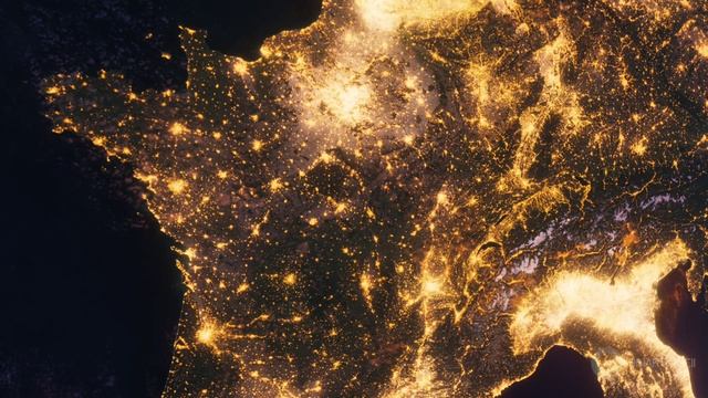 Бесплатное видео футаж Планета Земля Ночью. Европа - Франция, Вид из Космоса с Орбиты. Ночной Глобус