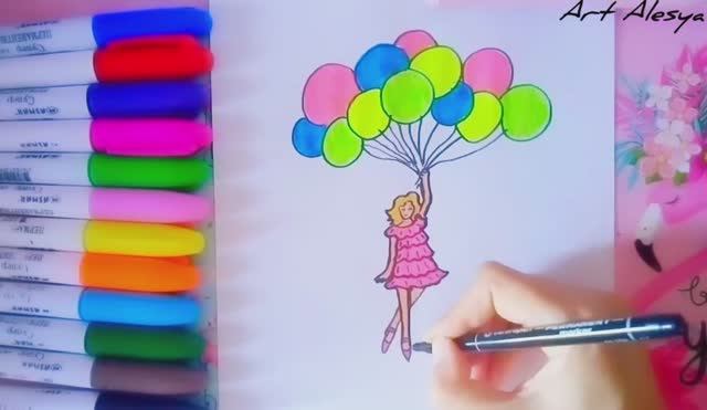 Рисую девушку с воздушными шарами!