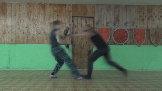 Пример применения наступания на стопу в ножевом бою.
