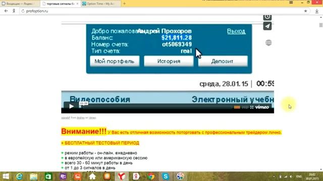 Видео отзыв клиента сервиса торговых сигналов для бинарных опционов http://www.money-option.ru/ и http://www.profoption.ru/ Клиент на видео совершает сделки по сигналам и выводит прибыль в размере 500$