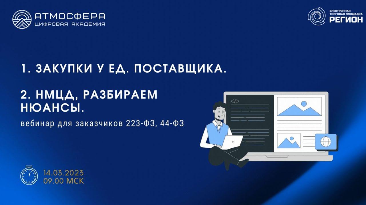 Подписывайтесь на нас в социальных сетях, чтобы не пропустить свежие новости: https://academy-atmosphere.ru/zakupki https://t.me/academy_atmosfera https://vk.com/academy_atmosfera https://rutube.ru/channel/24606397/ 00:00 Вступление 02:08 Приветствие спикера Сафину Светлану Дамировну 03:13 Закупка у единственного поставщика 04:01 Закупка у ЕП 08:19 Закупка у ЕП – 44-ФЗ 22:30 Неконкурентная закупка – 223-ФЗ 25:00 Признаки конкурентной закупки – 223-ФЗ 28:15 Закупка единственного поставщика – 223-ФЗ 29:31 Закупка у ЕП – 223-ФЗ 31:55 Условия проведения неконкурентных закупок 32:28 Размещение сведений в ЕИС 34:37 Особенности закупки у ЕП – 223-ФЗ 44:15 Позиция Верховного Суда РФ 46:06 Закупка у ед. поставщика 48:56 Практика судов 49:25 Негативные последствия 51:20 Ответы на вопросы участников 01:23:21 Приветствие спикера Султанову Лилию Файласовну 01:23:50 НМЦД, разбираем нюансы (223-ФЗ,44-ФЗ) 01:24:14 НМЦД/НМЦК 01:24:52 223-ФЗ 01:30:49 Порядок определения формулы цены (223-ФЗ) 01:31:47 Формула цены (223-ФЗ) 01:33:00 Методы обоснования цены (223-ФЗ) 01:36:30 Методы обоснования цены – варианты анализа рынка (223-ФЗ) 01:41:02 Иные методы обоснования цены (223-ФЗ) 01:45:42 Что должно содержать обоснование НМЦД, ЦД с ЕП, цены за единицу ТРУ? 01:51:17 223-ФЗ 01:53:15 44-ФЗ 02:03:13 Методы обоснования цены 44-ФЗ 02:04:48 Обоснование цены 44-ФЗ 02:08:05 44-ФЗ 02:11:05 Ошибки 02:15:01 44-ФЗ 02:16:25 Ответы на вопросы участников