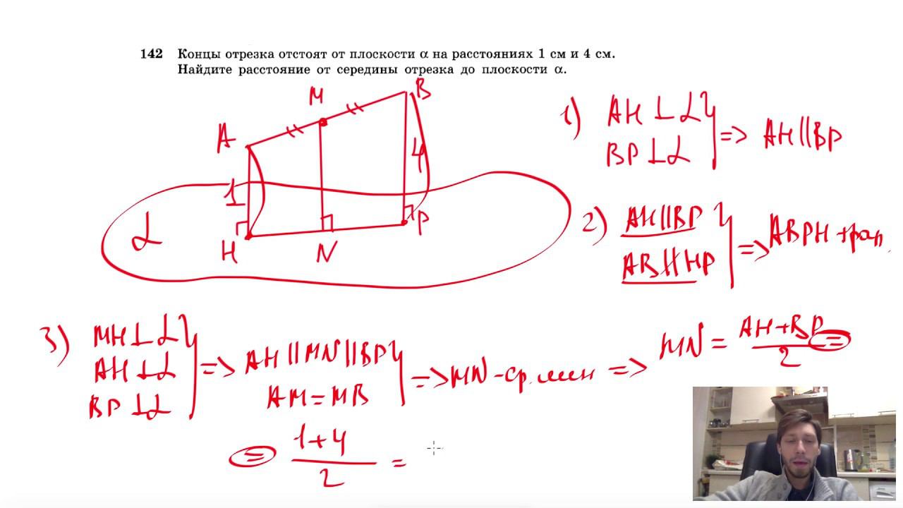 №142. Концы отрезка отстоят от плоскости α на расстояниях 1 см и 4 см. Найдите расстояние от середины отрезка до плоскости α. Поддержать канал рублём - 5469400944002125 (Сбербанк) Мой второй канал для подготовки к ЕГЭ и ОГЭ - https://www.youtube.com/ЕвгенийСумин Инстаграм - https://www.instagram.com/EGE_OGE.math Личный инстаграм - https://www.instagram.com/ee_sumin VK - https://vk.com/evgeniysumin FB - https://www.facebook.com/EvgeniySumin