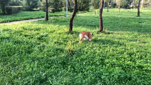 Антистресс видео | Утро, солнышко, утренние игры | Английский бульдог Черри и Мартин на травке