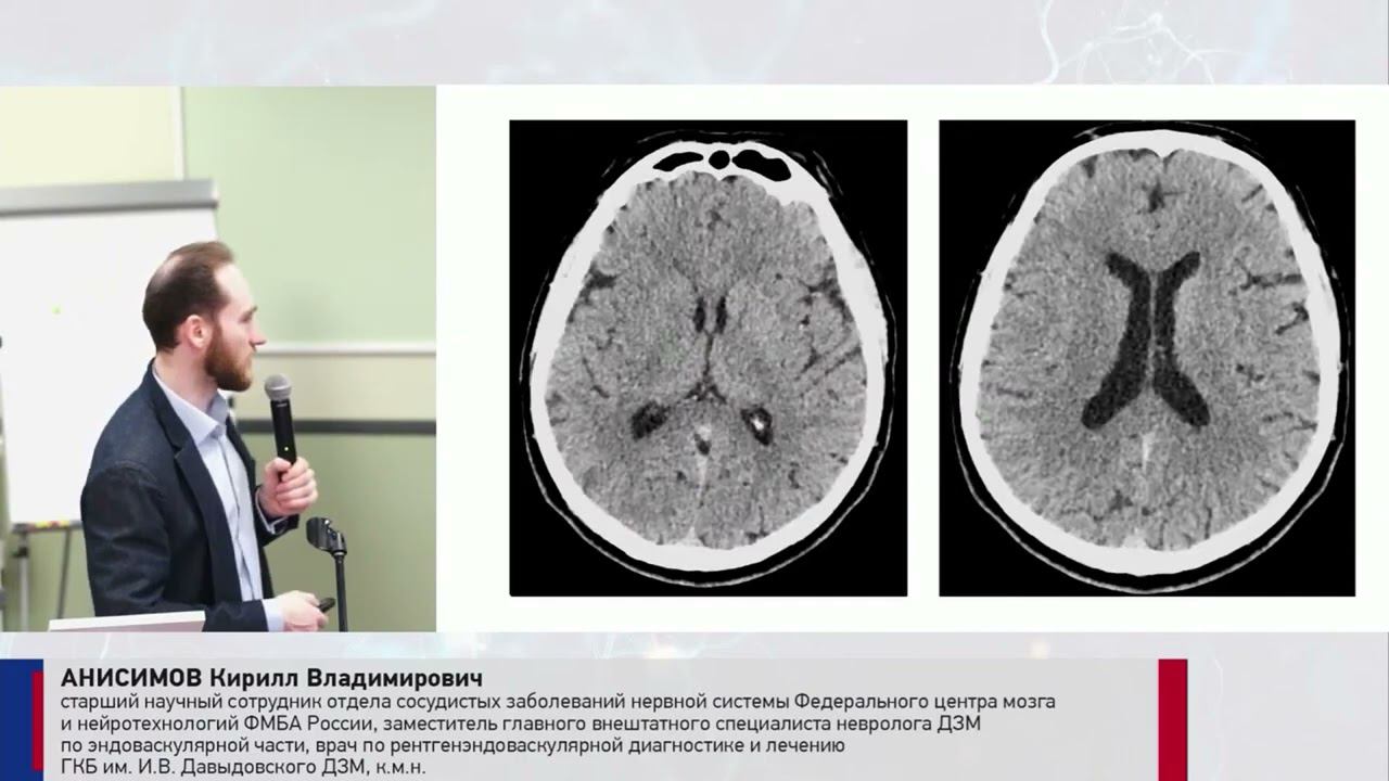 25.02.2022 "Московский курс по сосудистой патологии" "Новые Российские клинические рекомендации по лечению ишемического инсульта" "Клинические примеры. Что изменили новые рекомендации в алгоритмах лечения пациентов?" Анисимов Кирилл Владимирович специалист по рентгенэндоваскулярной диагностике и лечению ГКБ им. И.В. Давыдовского, к.м.н.