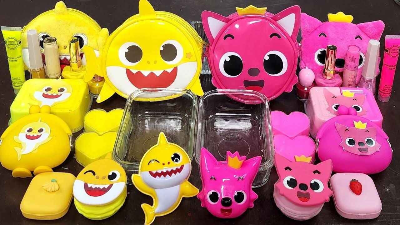 Бейби Шарк против Пинкфонг Слайм, смешиваем блестки из косметики в Слайм, ASMR