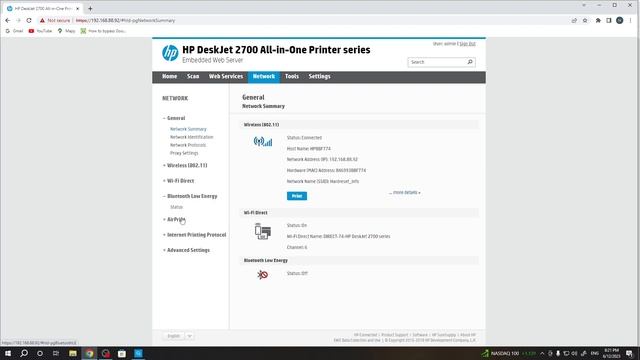How to Enable or Disable Bluetouth on HP DeskJet 2700 Printer?