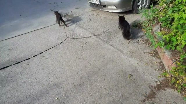 Фото прогулки котов Мишки и Тишки на улице.