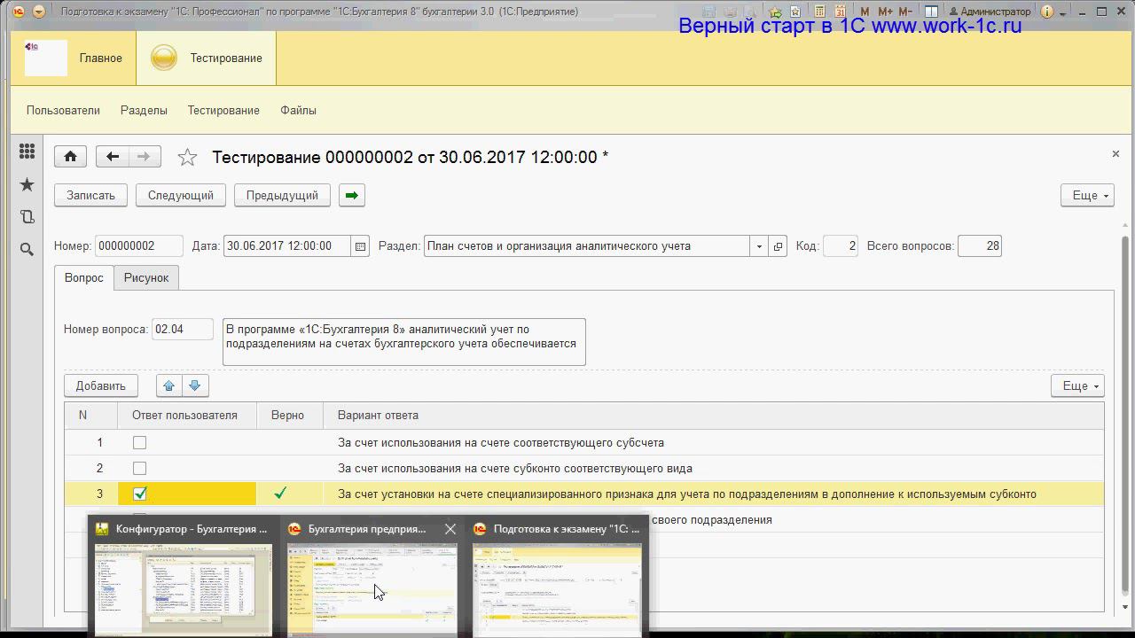http://www.work-1c.ru/ Разбор вопросов к экзамену 1С Профессионал по бухгалтерии 3 2-й Раздел - План счетов и организация аналитического учета вопросы 7-14