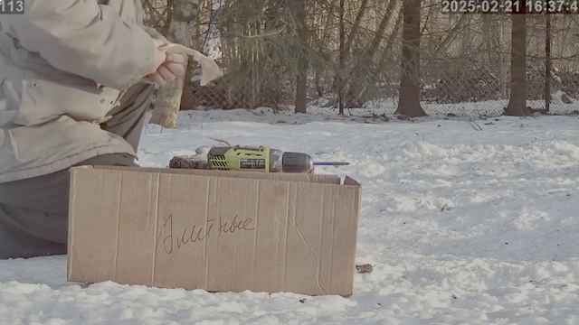 Олег подготавливает еду для гостей птиц и животных