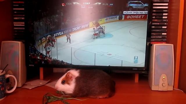 Морская свинка смотрит Чемпионат мира по хоккею Россия - Канада.mp4