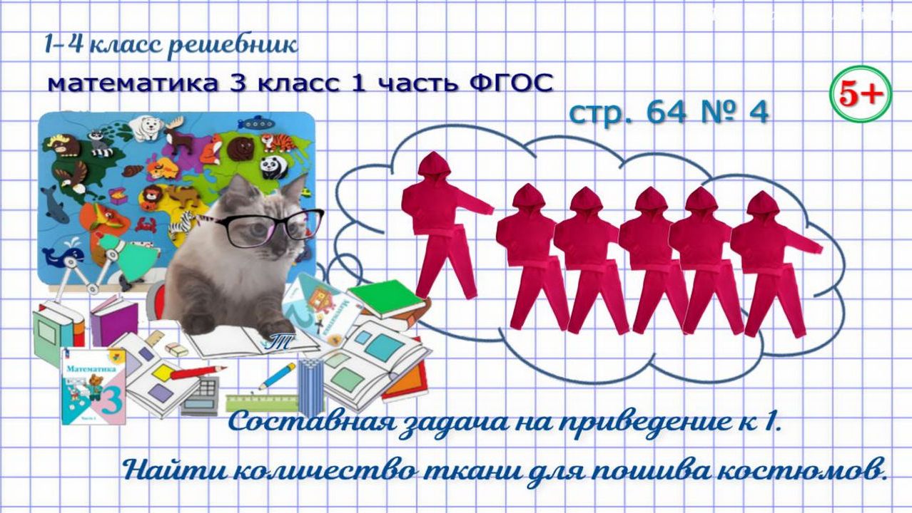 Составная задача на приведение к 1. Составная задача с пропорциональными единицами. Сколько метров ткани потребуется для пошива 10 таких костюмов? Для 7 костюмов? Страница 64 номер 4 математика 3 класс 1 часть Моро 2023 г. ФГОС. Если нашли ошибку, напишите, пожалуйста, в комментариях. Сайт с текстовым содержанием: https://dzen.ru/id/650204661aba9b0ba4b2643e #обучениематематике#математика3класс1частьст64рномер4#составнаязадачанаприведениек1#составнаязадачаспропорциональнымивеличинами#сколькопотребуетсятканидляпошива10такихкостюмов#скольклометровтканипотребуетсядляпошива7такихкостюмов#математика3класс1частьФГОС#математика3кл1чФГОС#математика3класс1частьморо2023#длядетей#решебникматематика3класс#гдзматематика3класс#начальныеклассы#1-4классрешебник+